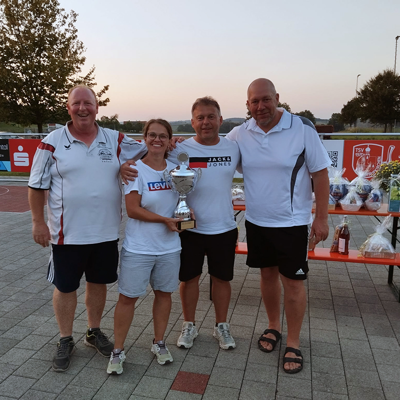 Mit großer Spannung wurde das Finale um den begehrten Wanderpokal, spendiert vom 1. Bürgermeister Franz Ehgartner, erwartet. Und die Zuschauer wurden nicht enttäuscht! Es entwickelte sich eine hochdramatische Begegnung, bei der die letzte Kehre erst die Entscheidung brachte. Mit einer fehlgeschlagenen Mass verpassten „de Griabign“ den Spielausgleich und die damit verbundene Verlängerung. Die TSV Vorstandschaft konnte sich über den Sieg freuen und darf im nächsten Jahr den erstmals errungenen Ortsmeistertitel verteidigen.