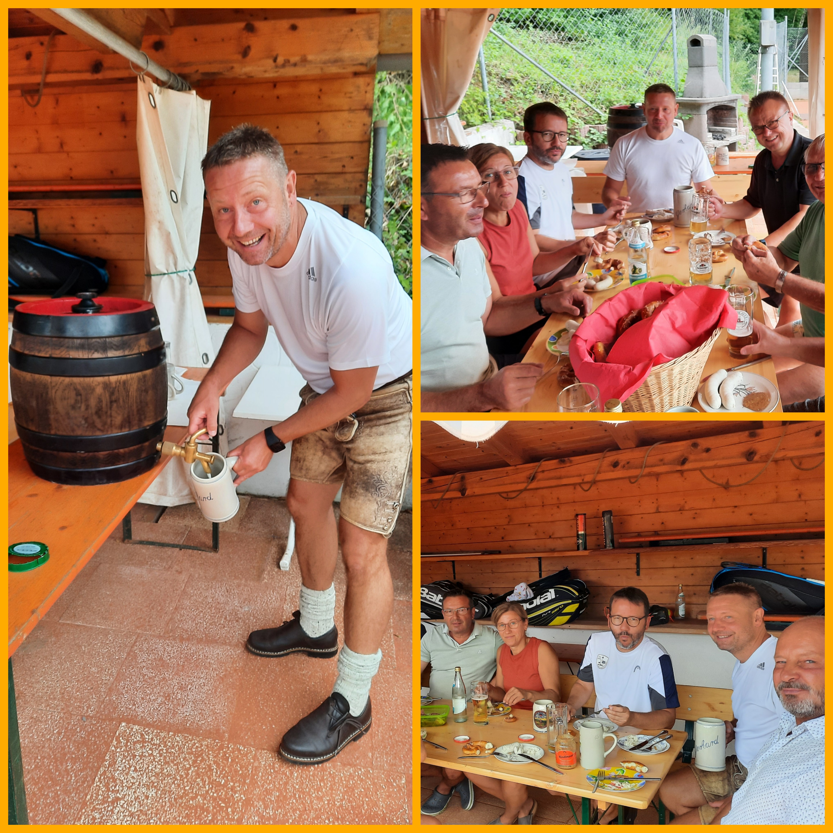 Der Finaltag begann traditionell mit einem Weißwurstessen. Der stv. Abteilungsleiter und Turnierleiter Oliver Kern spendierte, auch schon fast traditionell, ein 30-Liter-Fass. So waren die Grundlagen für einen schönen Tag auf der Tennis-Anlage geschaffen.